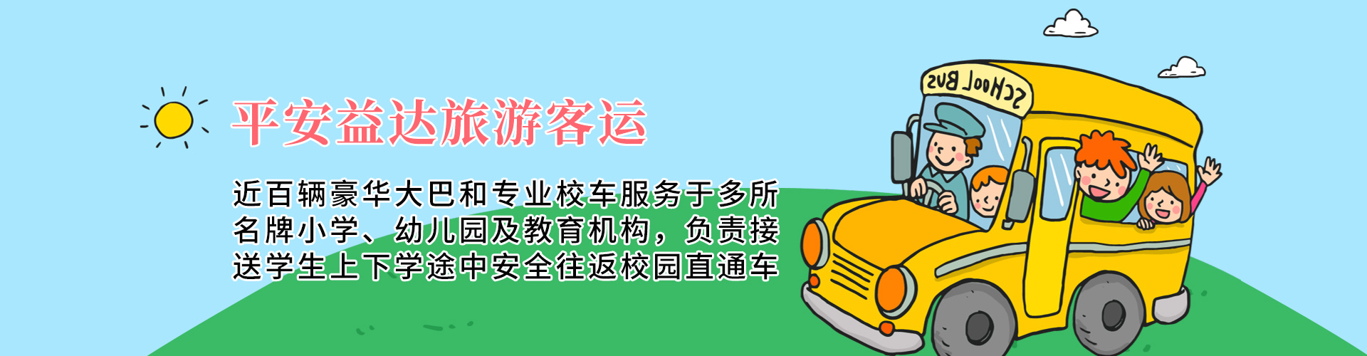 北京平安益达旅游客运服务有限公司是为教育行业提供专业校车服务的公司。主要服务:专业校车租赁、商务会议用车、机场接送用车、涉外活动用车、企业通勤班车、全国旅游用车、大型活动用车等。我公司及合作伙伴遍及全国所有一线城市,在我公司订车可享受全国方便快捷的商务租车服务。